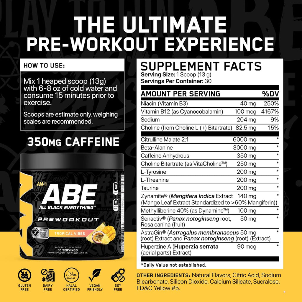 ABE is the UK's best selling pre-workout delivers a unique blend of the most researched ergogenic aids and performance ingredients to fuel your physical performance, reduce tiredness & fatigue* and to enhance focus throughout your training session. Creatine Monohydrate may increase physical performance in successive bursts of short term, high intensity exercise.