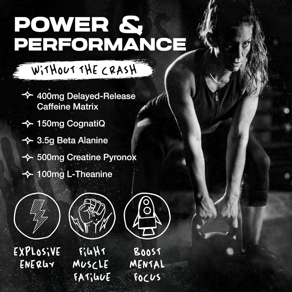 - Caffeine Anhydrous + Di-Caffeine Malate (400mg Total Caffeine Blend Yielding 375mg): Delivers sustained, crash-free energy.