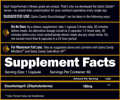 - GlucoVantage®Consume 1 capsule, 30 minutes prior to a meal, 3x daily.