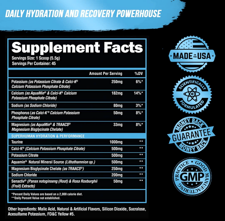 SuperHuman Hydration contains 6 electrolytes, that are premium ingredients at scientific dosages, so you get the best hydration product you possibly can.