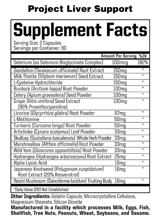 - Liver Support* -Project Liver Support is unlike any other liver supplement on the market today. This supplement is packed with key liver-supporting antioxidants and nutrients that help maintain healthy liver function.*