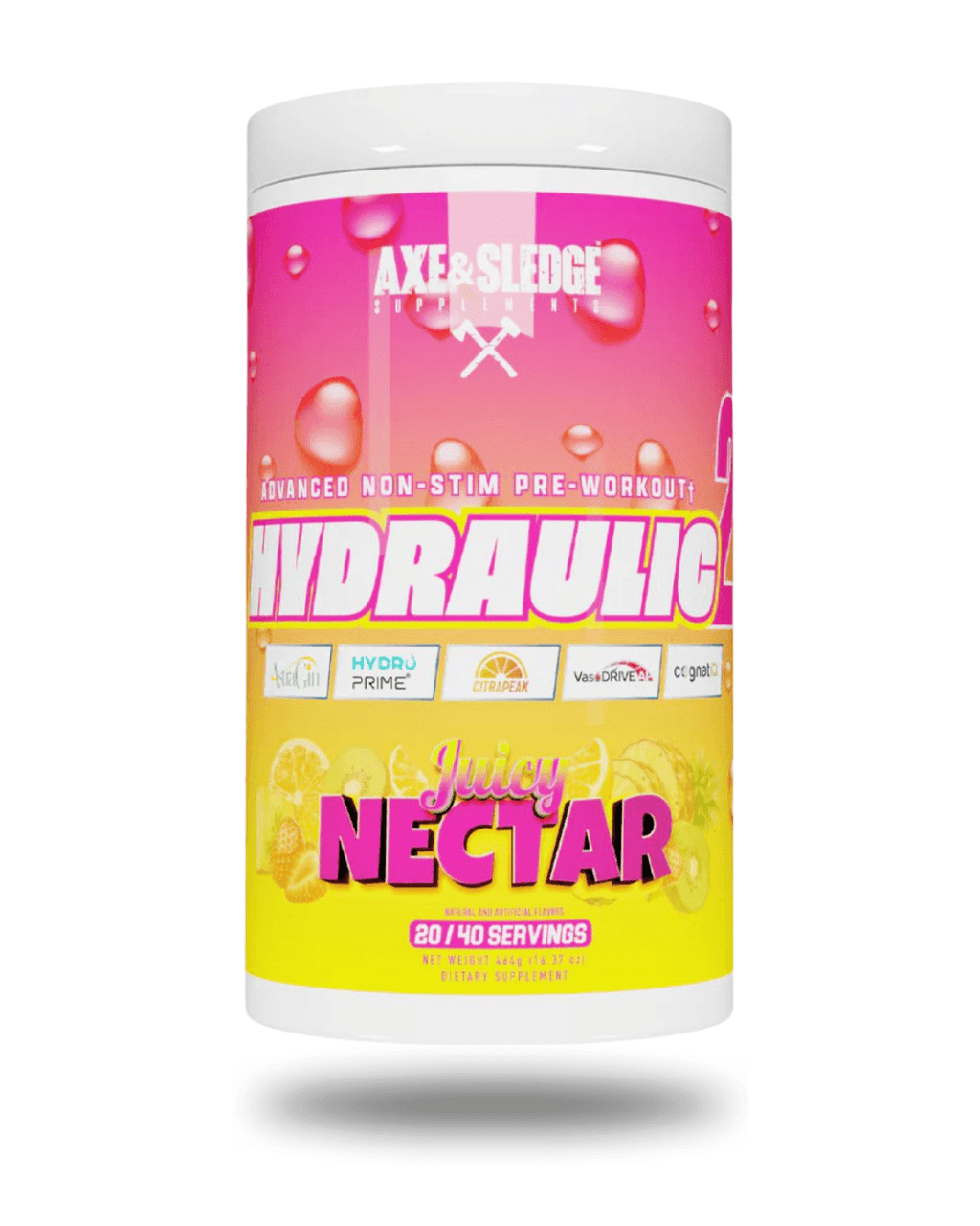OVERALL, HYDRAULIC V2 IS A MUCH MORE WELL-ROUNDED PRE-WORKOUT WITH ENHANCED PUMPS, HYDRATION, PERFORMANCE, AND FOCUS. ALONG WITH THE REVISED FORMULA, THE LABELS HAVE BEEN REDESIGNED TO HAVE A MORE MODERN LOOK WITH A RAISED TEXTURE.