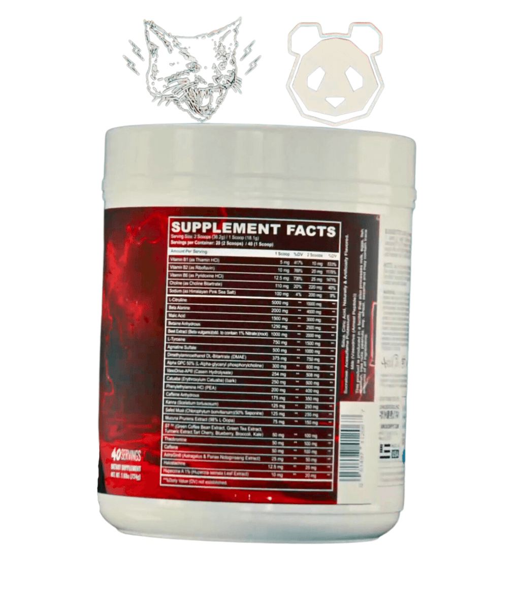 Savage PRE-Workout, a collaboration between Panda Supps and Black Magic Supply. A limited edition release that is nothing short of a powerhouse. This premium, loaded pre-workout is packed with fully dosed ingredients that will etch its mark in your memory for years to come. Let's just let the ingedients do the talking