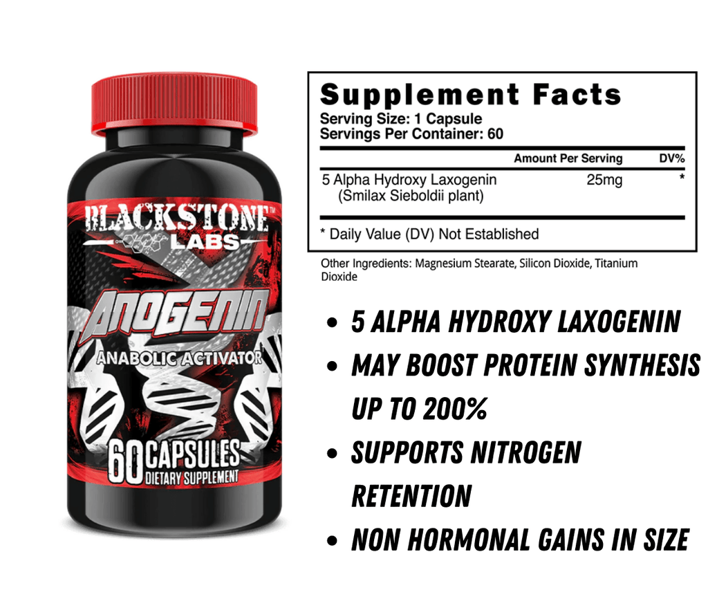 5 Alpha Hydroxy Laxogenin (25mg) commonly referred to as Laxogenin or “laxo” for short, 5 Alpha Hydroxy Laxogenin is an all-natural, plant-based steroid shown to enhance protein synthesis by over 200%! Anogenin doesn’t affect natural testosterone production (meaning there’s no need for post cycle therapy), but will significantly increase strength, power, performance, and body composition in as little as 2-3 weeks! Natty or not, Anogenin belongs in any muscle-building stack.