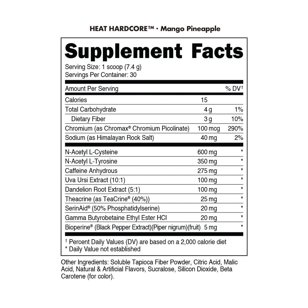 Our first fat burner, HEAT, is the gateway supplement, the clean radio-friendly version -- even the most sensitive snowflake can benefit from and enjoy. HEAT Hardcore (powder) is the unedited, uncensored version only for those who can handle heat that’s so intense it’s almost blasphemous.