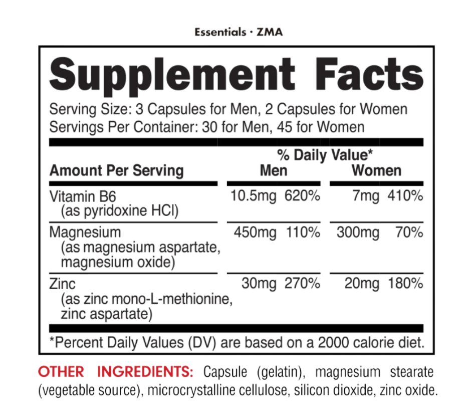 ZMA is a natural mineral supplement made up of zinc, magnesium aspartate, and vitamin B6. This combo of essentials has been shown to support muscle function*, immune strength*, and cognitive functioning.*