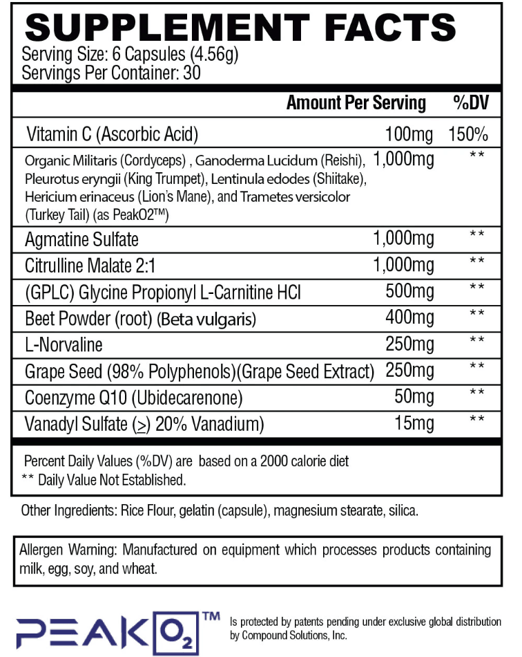 shown in human studies to enhance oxygen utilization. Peak02 has been noted to increase power output by 17.6% in trained