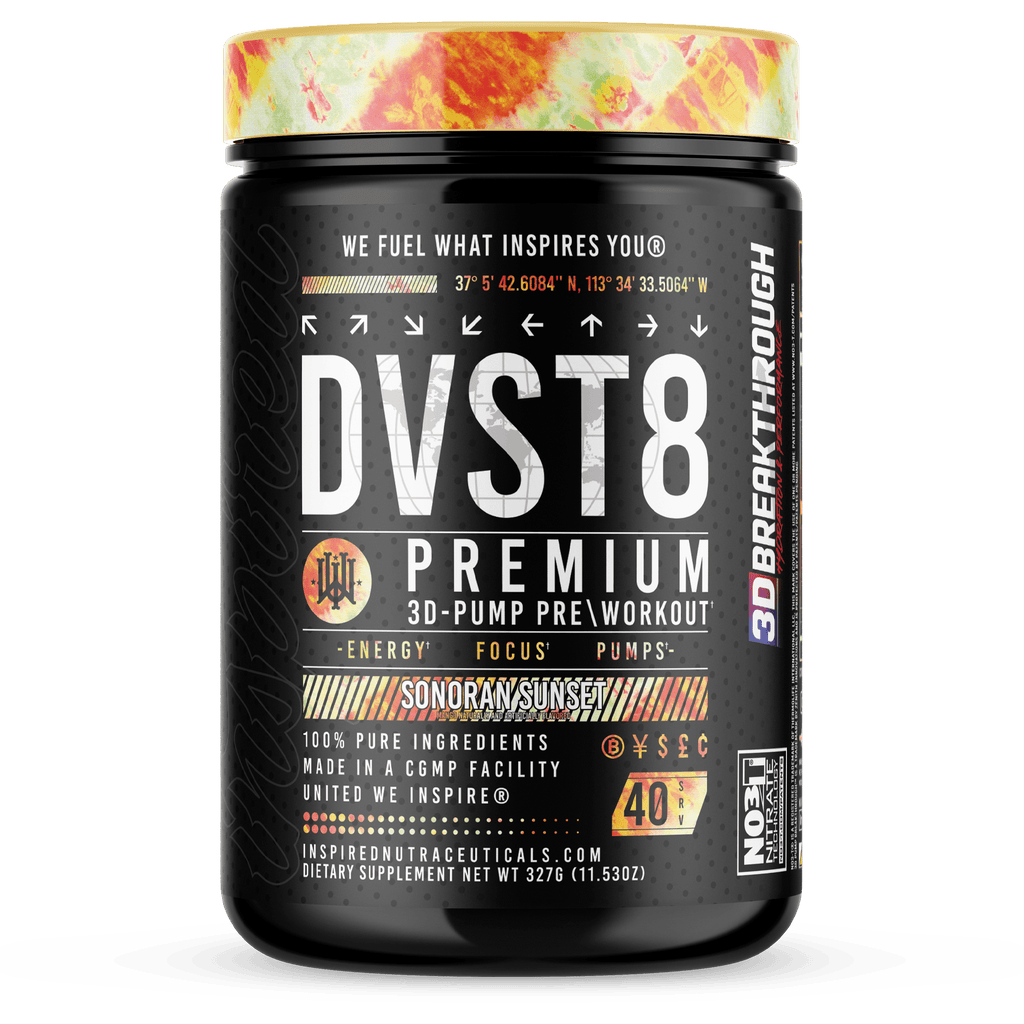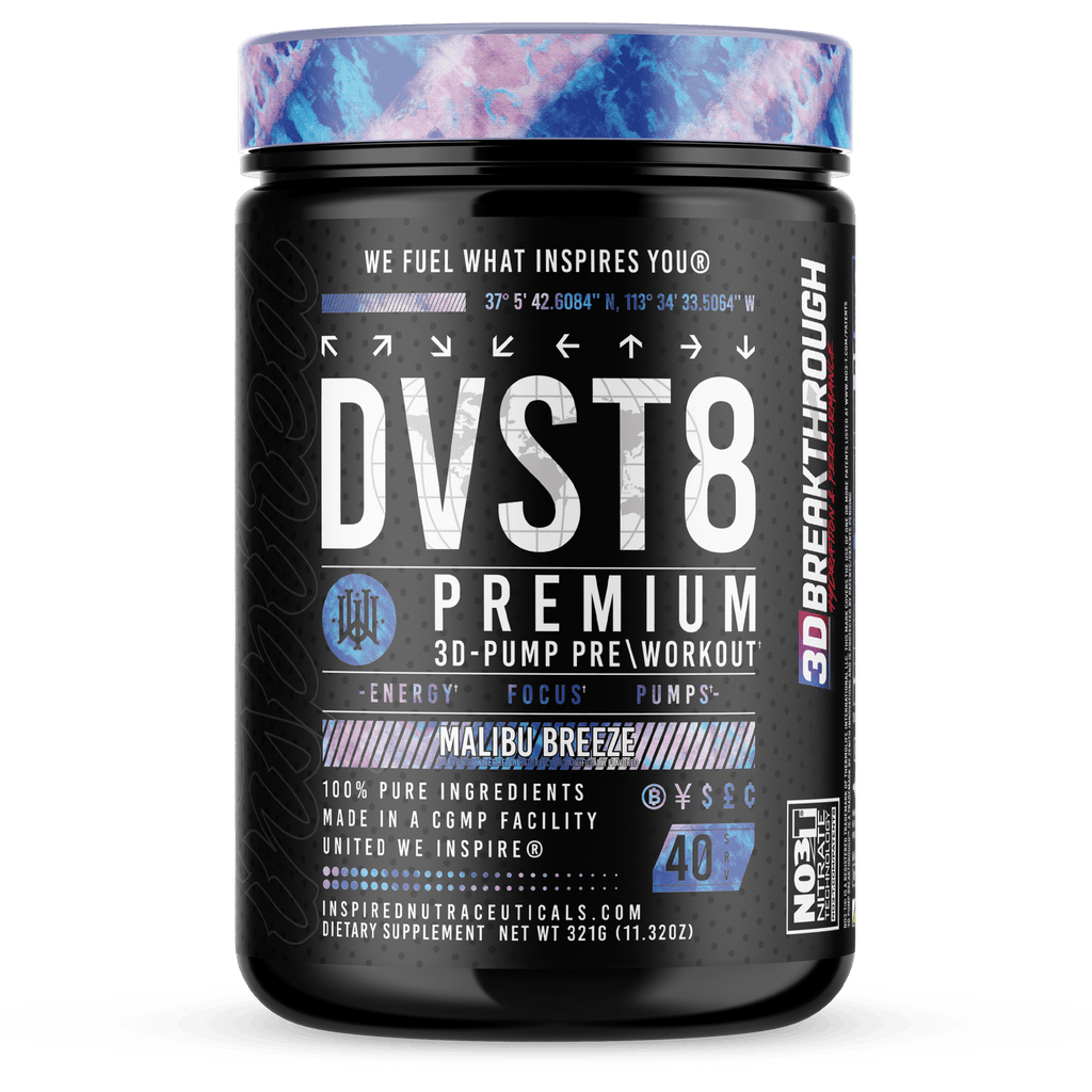 Q: What’s the difference between DVST8 Worldwide and DVST8 Global? A: DVST8 Global contains the same base stimulant formula and no WADA banned substances. We replaced pure citrulline with 3D PUMP Breakthrough™, and increased the amount of NO3-T® nitrates by 500mg. We switched from NO3-T® Arginine Nitrate to NO3-T® Betaine Nitrate because betaine nitrates yield more nitrates per material than arginine nitrate. We also made DVST8 Global a 20/40 serving container to allow flexibility in dosages, allowing advanced users to take up to 2 scoops per serving.