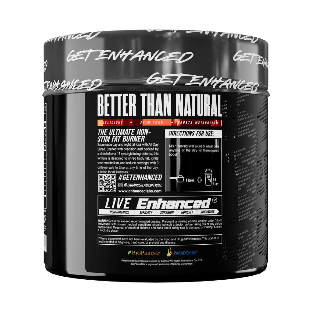 Unlock 24/7 fat burn with All Day Shred, the premier non-stimulant fat loss supplement used by high-level physique competitors, athletes, and individuals looking to shed fat. Crafted to be the perfect day and night fat burner that aims to naturally increase and optimize your body's metabolism through its synergistic blend of thermogenic and fat-mobilizing ingredients, helping you stay on your weight loss journey—even while you sleep.