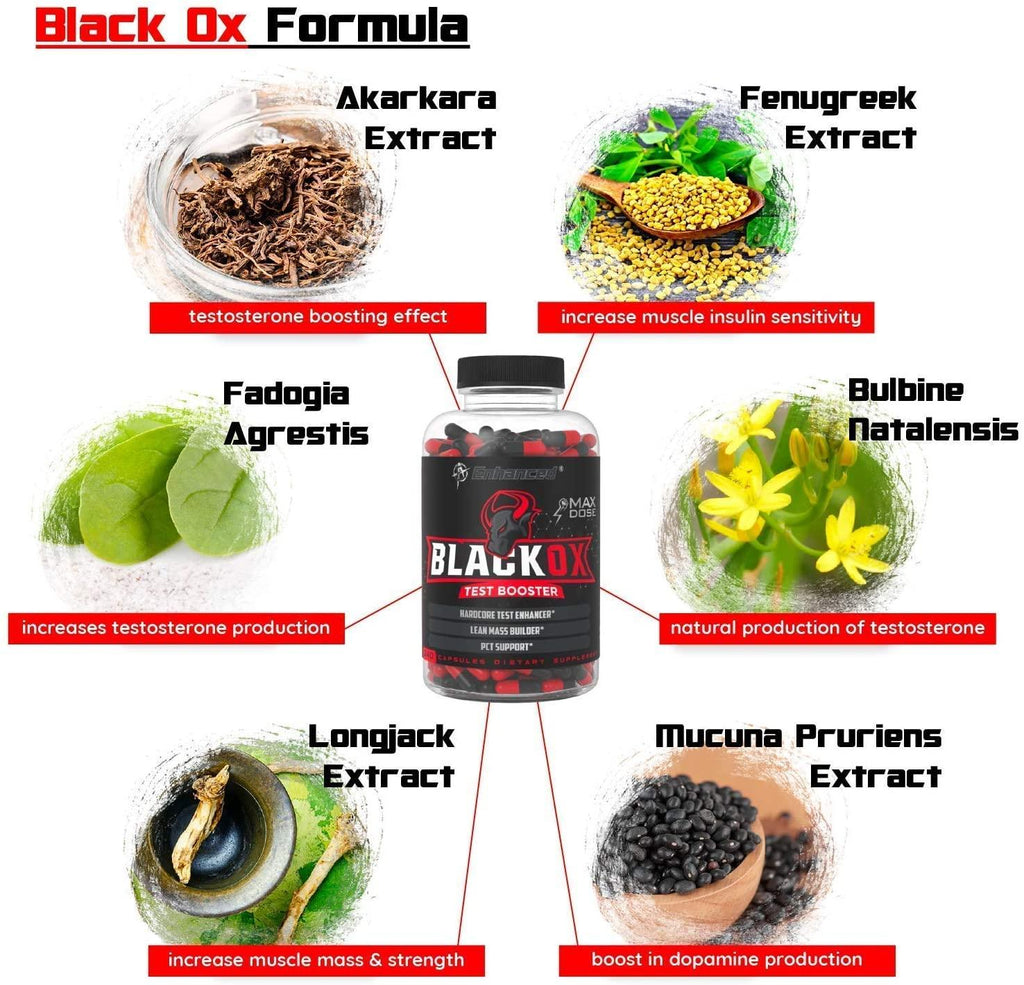 Black Ox contains 11 scientifically proven ingredients at full therapeutic dosages to naturally boost testosterone, regulate estrogen, and enhance energy and stamina.