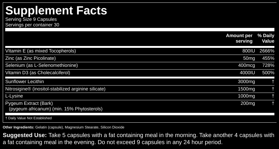 This product is comprised of carefully selected amino acids, minerals, vitamins, herbal extracts, nitric oxide precursors and phospholipids.