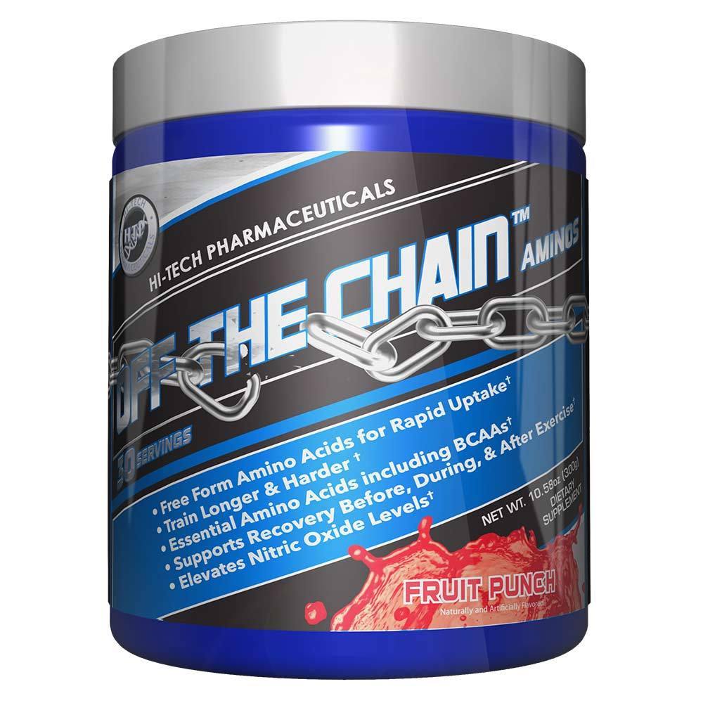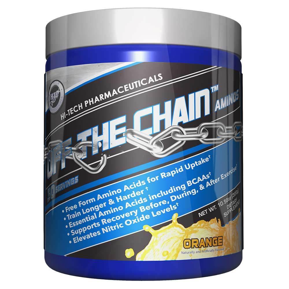 OFF THE CHAIN Aminos is an incredible breakthrough in the supplementation of Branched Chain Amino Acids (BCAA's) and recovery aids for muscle growth and repair after grueling training sessions. With its intention of use before, during and after training, our BCAA’s help kick-start protein synthesis which plays an important role in muscle growth and recovery. Hi-Tech's Essential Amino Acids superior ratio of rapidly absorbed free-form amino acids with potent energizers and NO ingredients was formulated to help you achieve OFF THE CHAIN gains - including muscle-building BCAAs and L-Citrulline for muscular pumps. OFF THE CHAIN™ Aminos has the ability to promote the following: