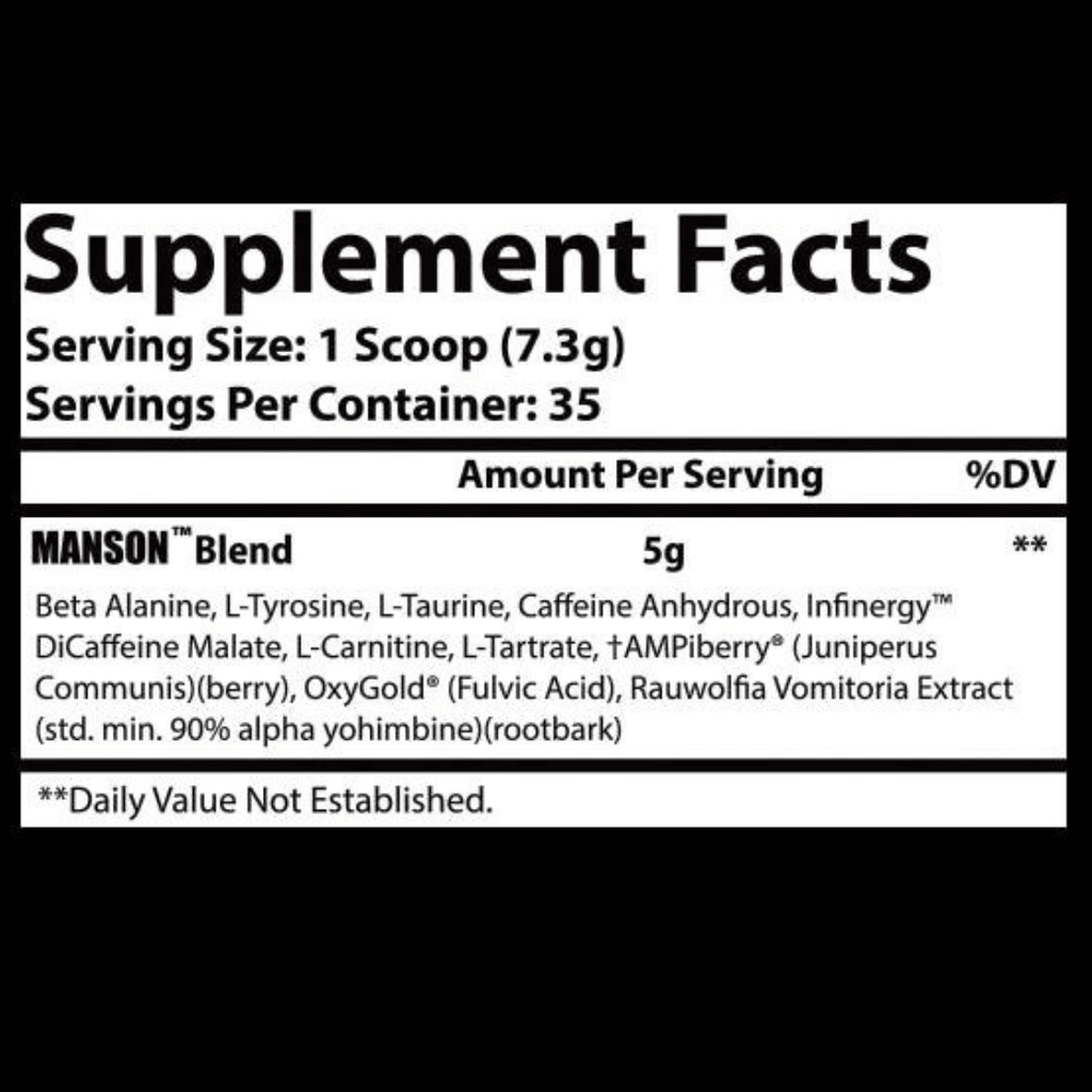 The Manson Family of pre-workout products will lead you to kill your workout - over and over again. Three great-tasting formulas will make it obvious to you why Manson had so many adoring fans that we brought it back!