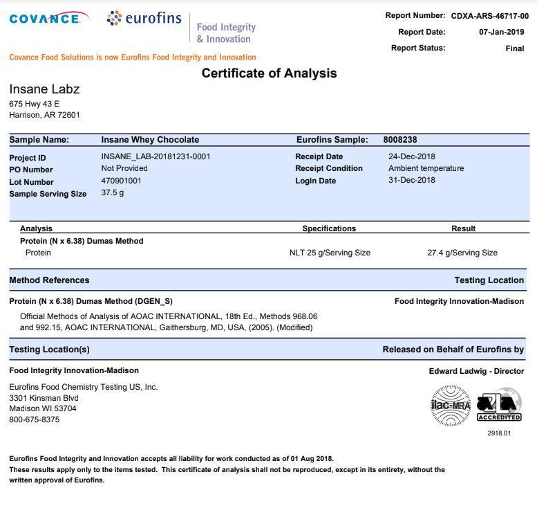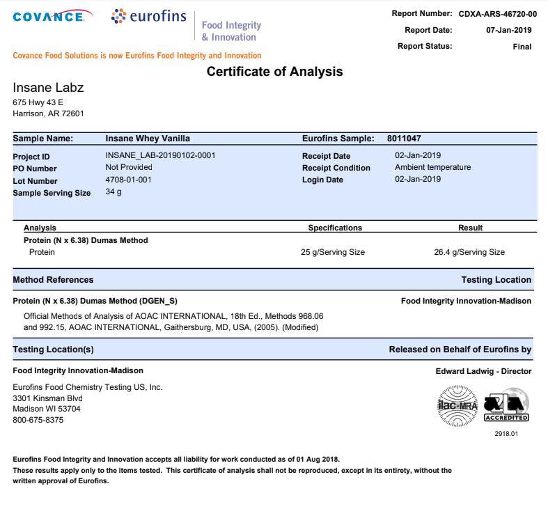 - BANNED SUBSTANCE FREE. Insane Whey is WADA approved so if you are a college or professional athlete, you can safely consume this product.
