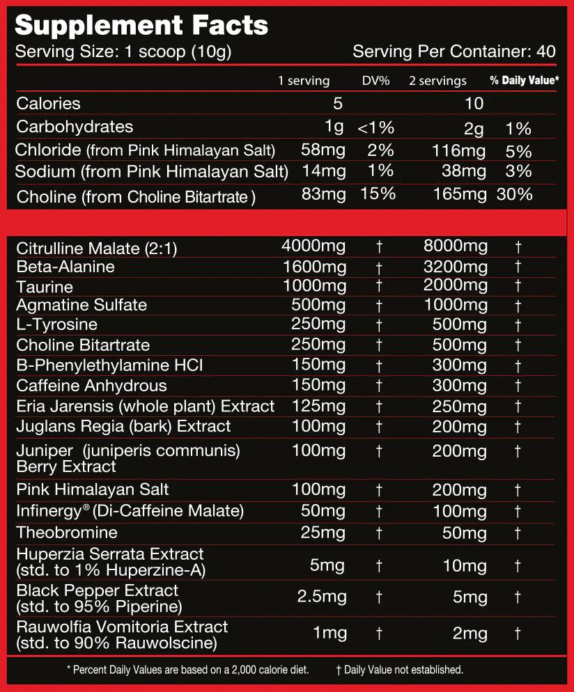 Killer Labz First Degree 400g nootropic pre-workout composition:
