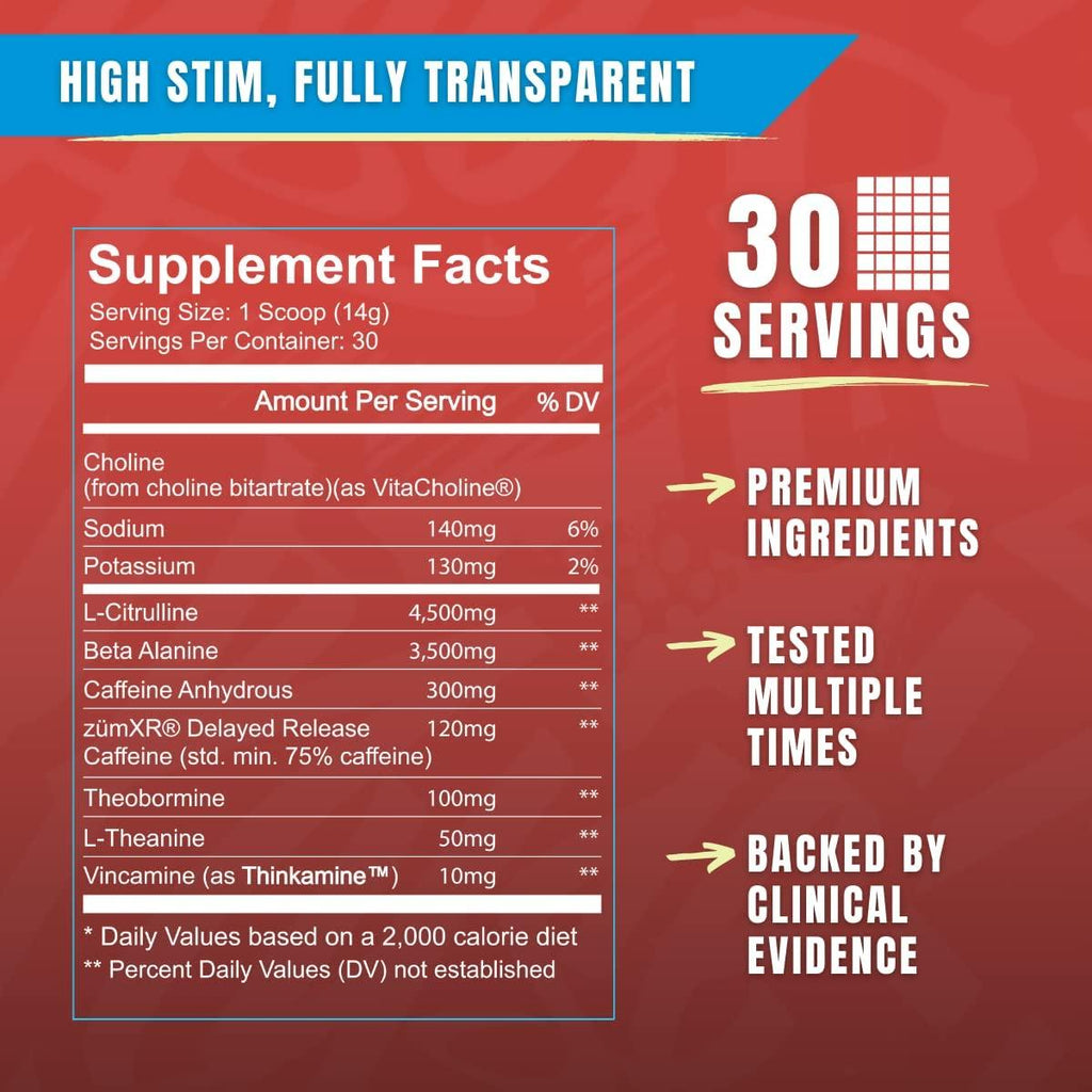 - 3.5G of Beta Alanine to push through muscle fatigue