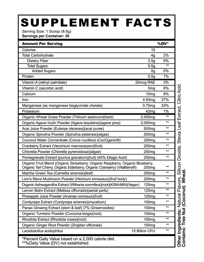 PANDA MUSHROOM POWER: From Lions Mane to Cordyceps, what would Panda Greens Superfood be without a mushroom lineup. When it comes to brain function, Lion's Mane is by far one of the most popular on the market, and adding it to Panda Natural Greens only makes it better. We also added a few enzymes to help increase digestion while acting as a natural anti-inflammatory to aid in digestion and joint pain. We finished it off with a probiotic that aids in gastric support.