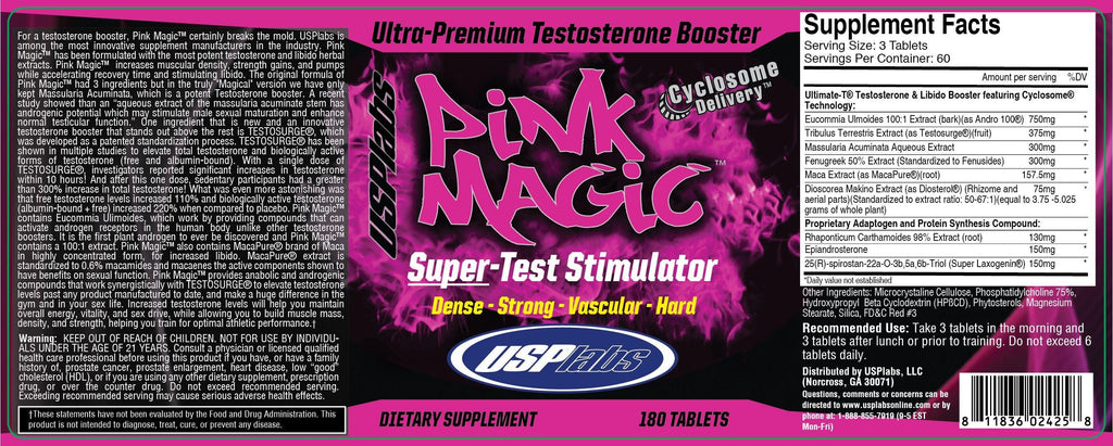 USP Labs Pink Magic™ is a potent Testosterone Booster that will turn the industry on its head when it comes to test boosters! USP Labs has developed a reputation for producing highly effective and extremely potent herbal supplements using only premium key ingredients. All too often you see supplements with huge labels full of low quality ingredients or doses too low to achieve an effect that may or may not work. So what is Pink Magic™ and what does it do? Pink Magic™ is a natural testosterone booster, vasodilation increaser and muscle density promoter. In other words, expect to get lean, dense, strong and hard muscles while taking Pink Magic™.