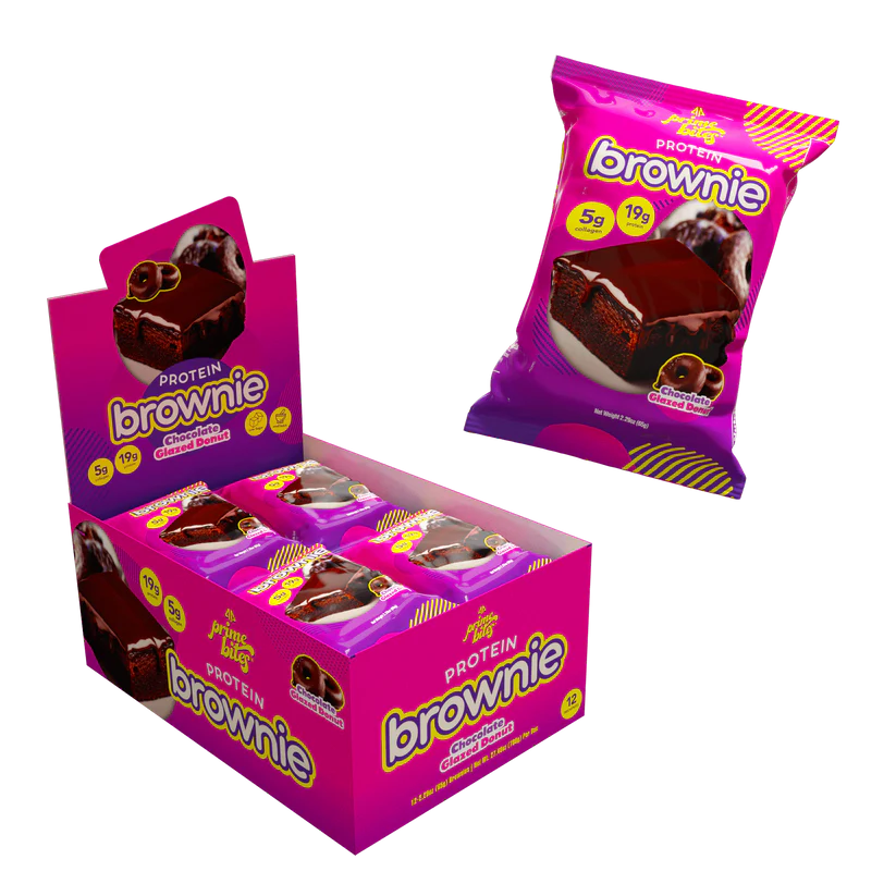 AP PRIMEBITES protein brownies are available in 12-packs of individually wrapped brownies, featuring four mouthwatering flavors: cookies & cream, chocolate peanut butter chip, chocolate cookie monster, and chocolate fudge.