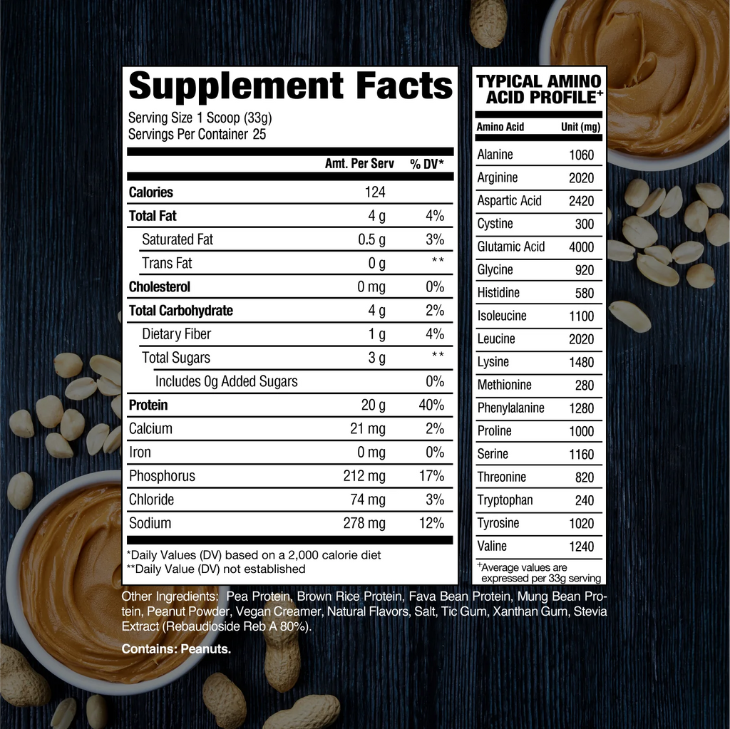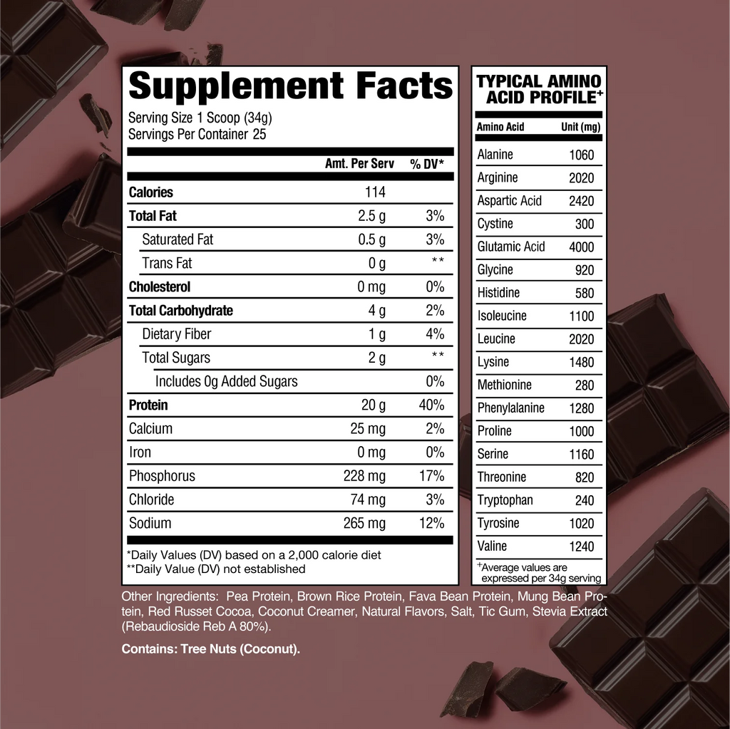 Raw Nutrition's Raw Vegan Protein is a top-tier blend of four vegan proteins, consisting of Pea Protein Isolate, Brown Rice Protein, Fava Bean Protein, and Mung Bean Protein. Each scoop contains 20g of quality protein, supplying a full array of amino acids to help with muscle repair, muscle growth, digestion, weight reduction and muscle maintenance. Enriched with vitamins, such as B12, and free of any hormones and antibiotics, this product is ideal for vegan lifestyles.