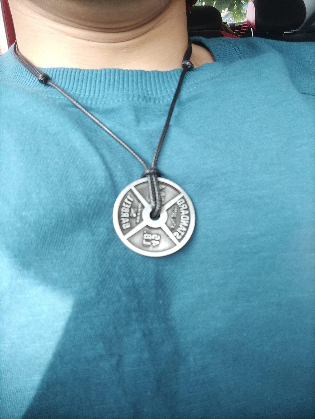 This alloy barbell plate charm is crafted from a tough yet lightweight alloy that is designed to endure the toughest workouts. Its corrosion-resistance properties make it an ideal companion for gym lovers. This barbell pendant makes a great gift for any fitness enthusiast in your life, so you can support them on their journey with a stylish piece of dumbbell jewelry that they can wear every day. Plus, the leather cord can be easily adjusted to the perfect fit for the recipient's neckline, ensuring a comfortable accessory.